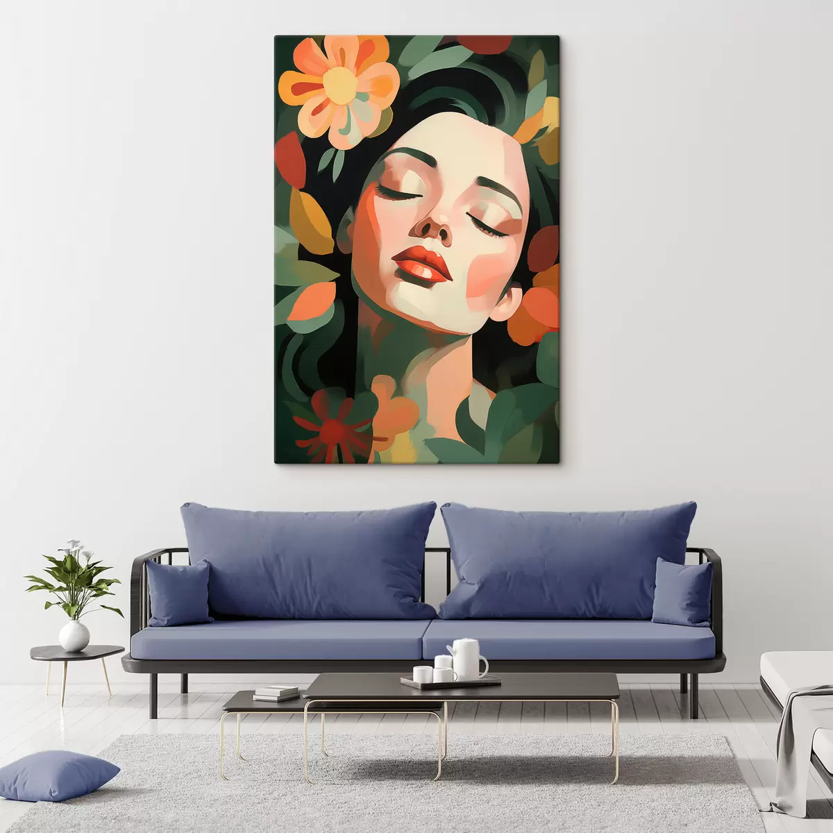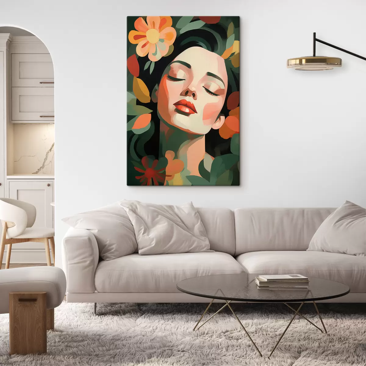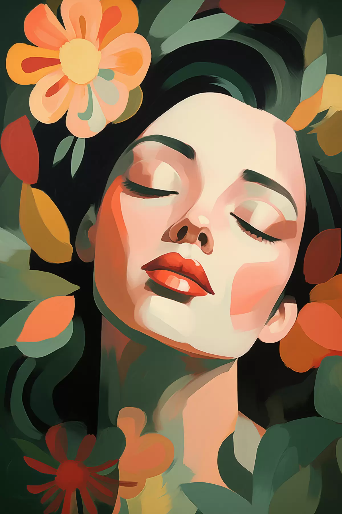 Peinture Portrait de femme avec des fleurs Art. s48959