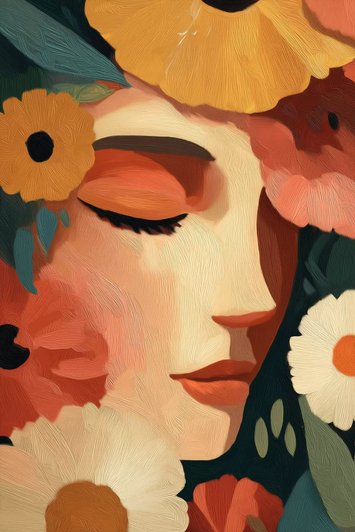 Peinture Portrait de femme avec des fleurs Art. s48960