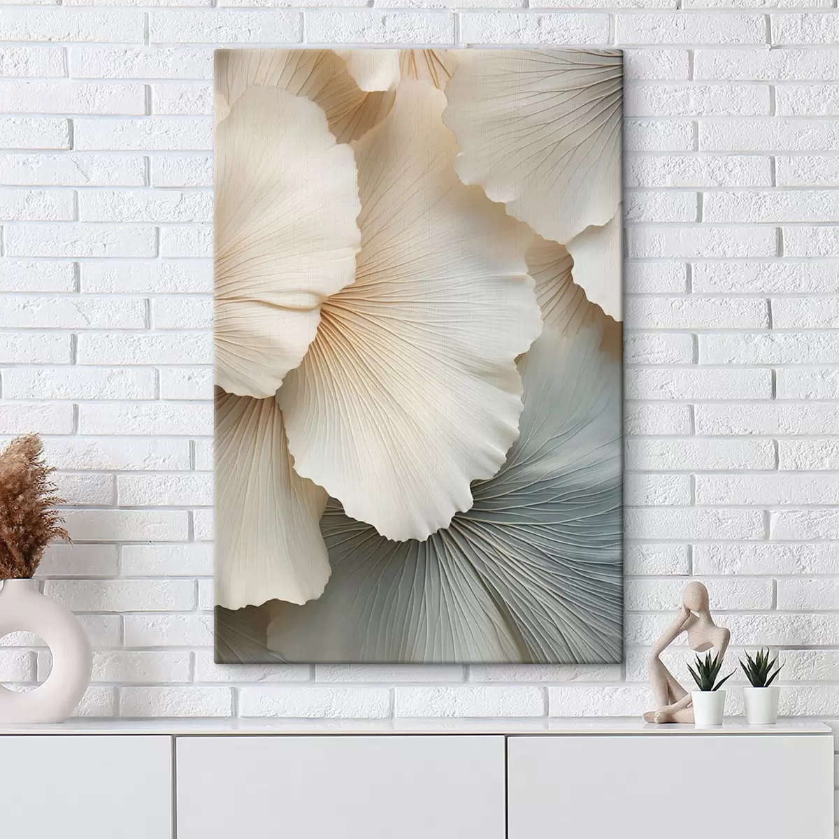 Trois types de matériaux peuvent être commandés : Economic Canvas - matériau dense et durable pour l'impression numérique, identique à la toile de peintre, surface imperméable, reproduction réaliste des détails, matériau à grain moyen. Premium Canvas - la texture ressemble à celle d'une toile de peintre (petits fils entrelacés). Reproduction douce et détaillée de l'image sur une surface mate. Eco-Premium - tissu 100 % coton de haute qualité. Grâce aux fibres naturelles de coton, le matériau est durable et résistant à l'usure. Excellente reproduction des couleurs et des détails.