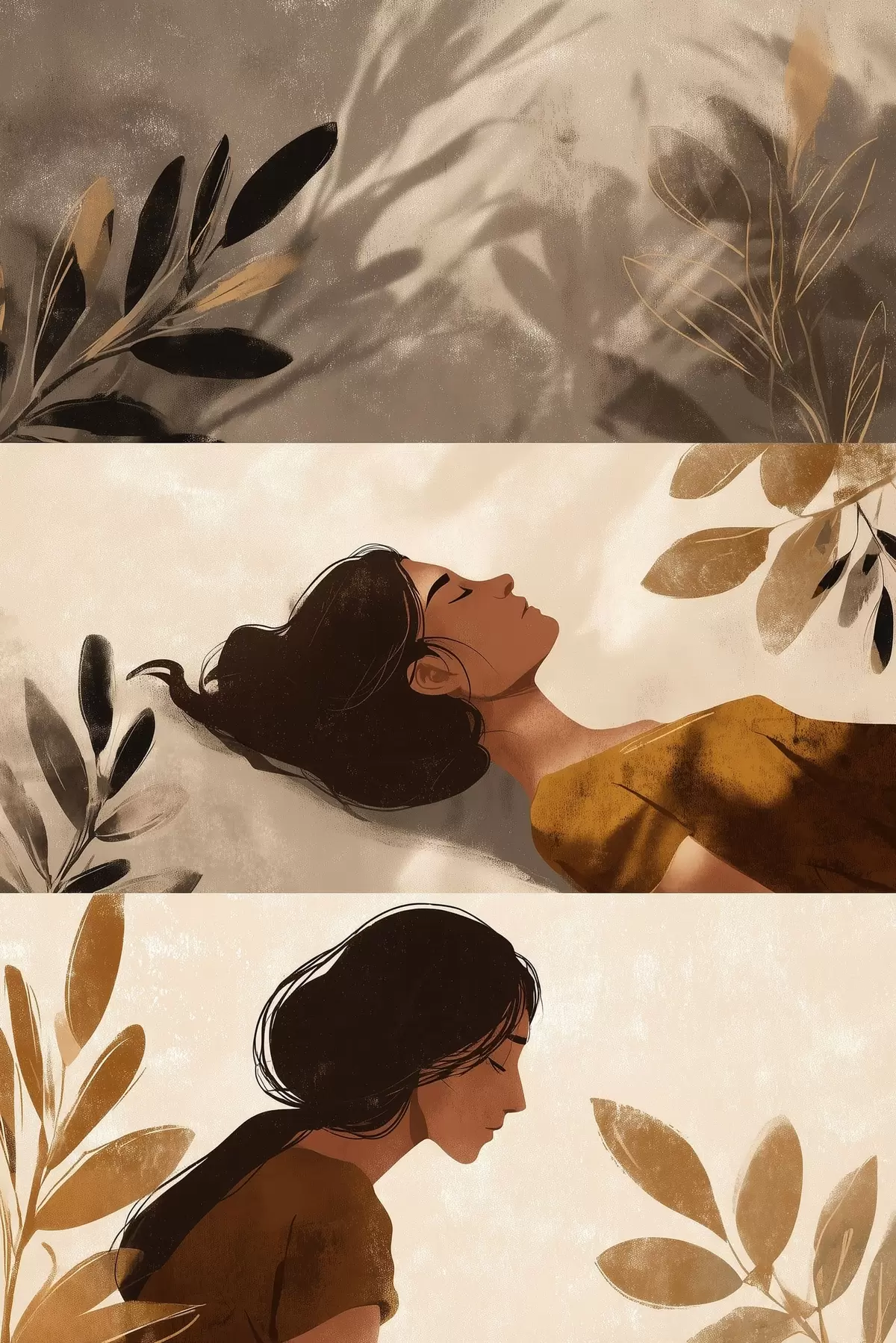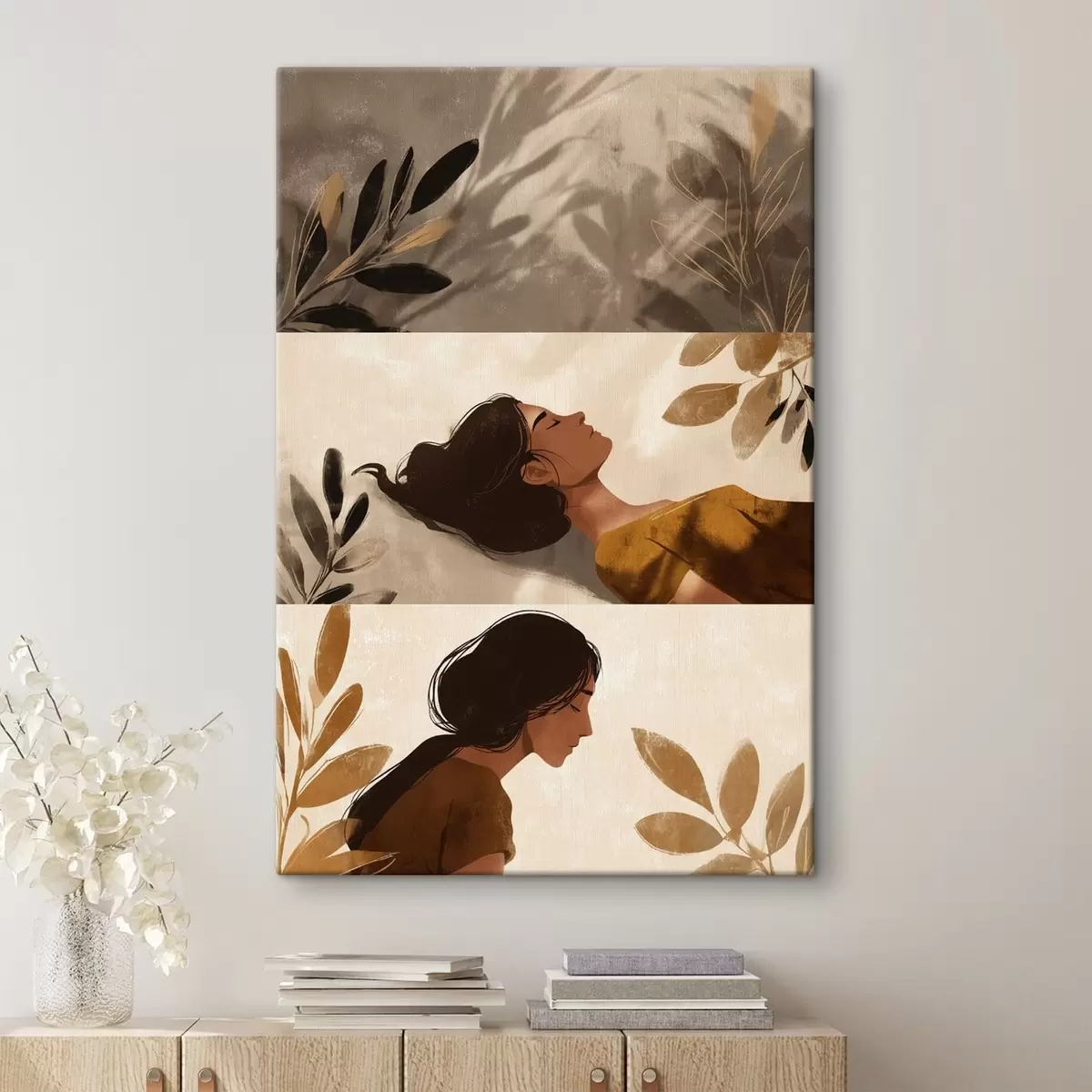 Peinture Triptyque « Femme aux feuilles » Art. s49018