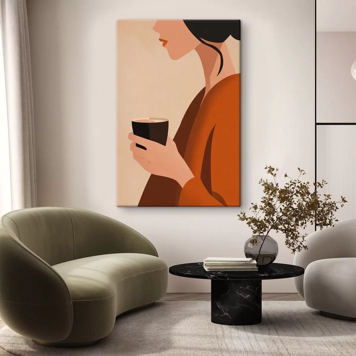 Peinture Femme avec une tasse (style minimaliste) Art. s49019