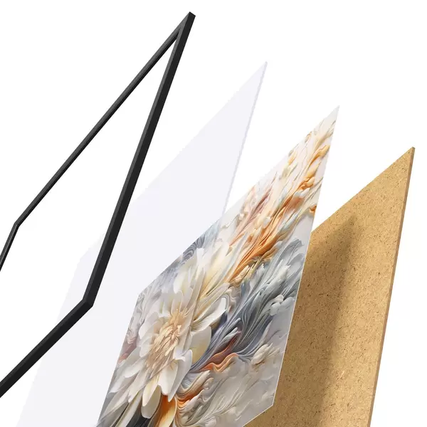 Le poster se compose d'un cadre, d'un plexiglas, d'une image imprimée et d'un support en aggloméré. Le poster peut être immédiatement accroché au mur grâce aux fixations au dos.