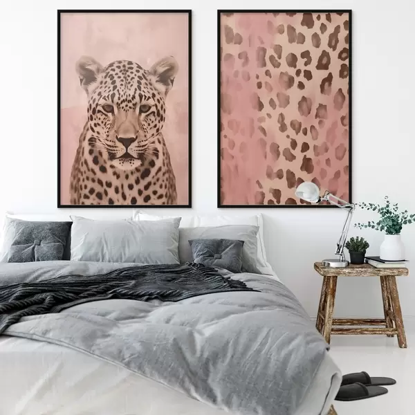 Affiche Portrait d'un guépard, Motif abstrait avec impression de léopard sur fond rose Non d00402