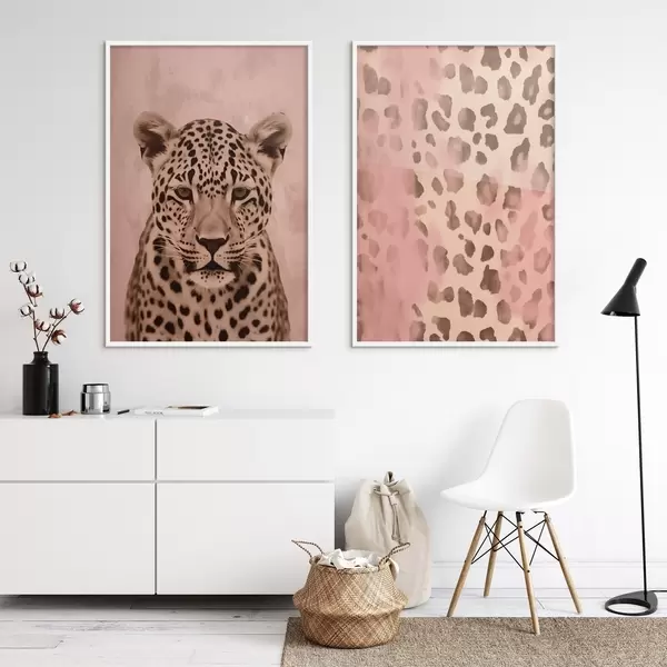 Affiche Portrait d'un guépard, Motif abstrait avec impression de léopard sur fond rose d00402