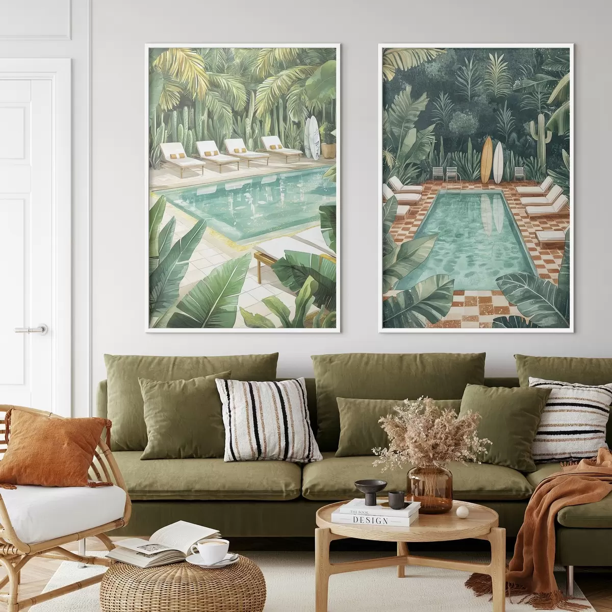 Affiche Piscine d'été, vintage, forêt tropicale, verdure, palmiers, style aquarelle Non d00422