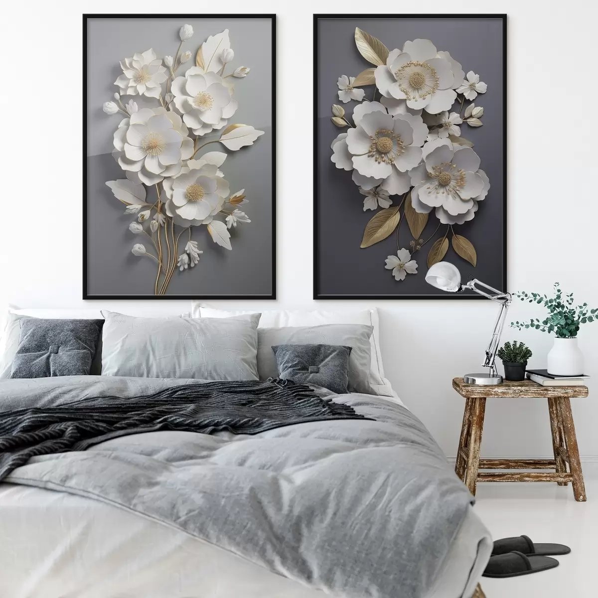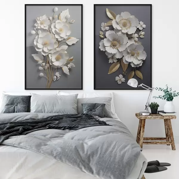 Affiche Composition de branches de fleurs sur fond sombre Non d00423