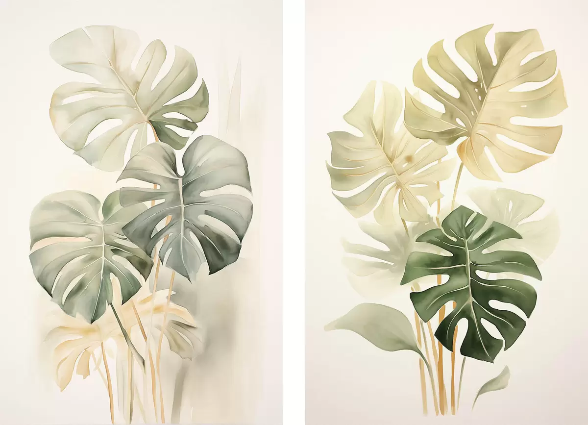 Affiche Feuilles de monstera, feuilles tropicales d00429