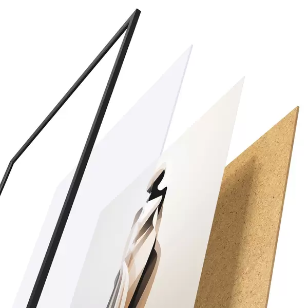 Le poster se compose d'un cadre, d'un plexiglas, d'une image imprimée et d'un support en aggloméré. Le poster peut être immédiatement accroché au mur grâce aux fixations au dos.