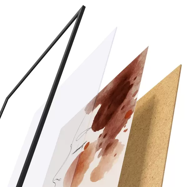 Le poster se compose d'un cadre, d'un plexiglas, d'une image imprimée et d'un support en aggloméré. Le poster peut être immédiatement accroché au mur grâce aux fixations au dos.