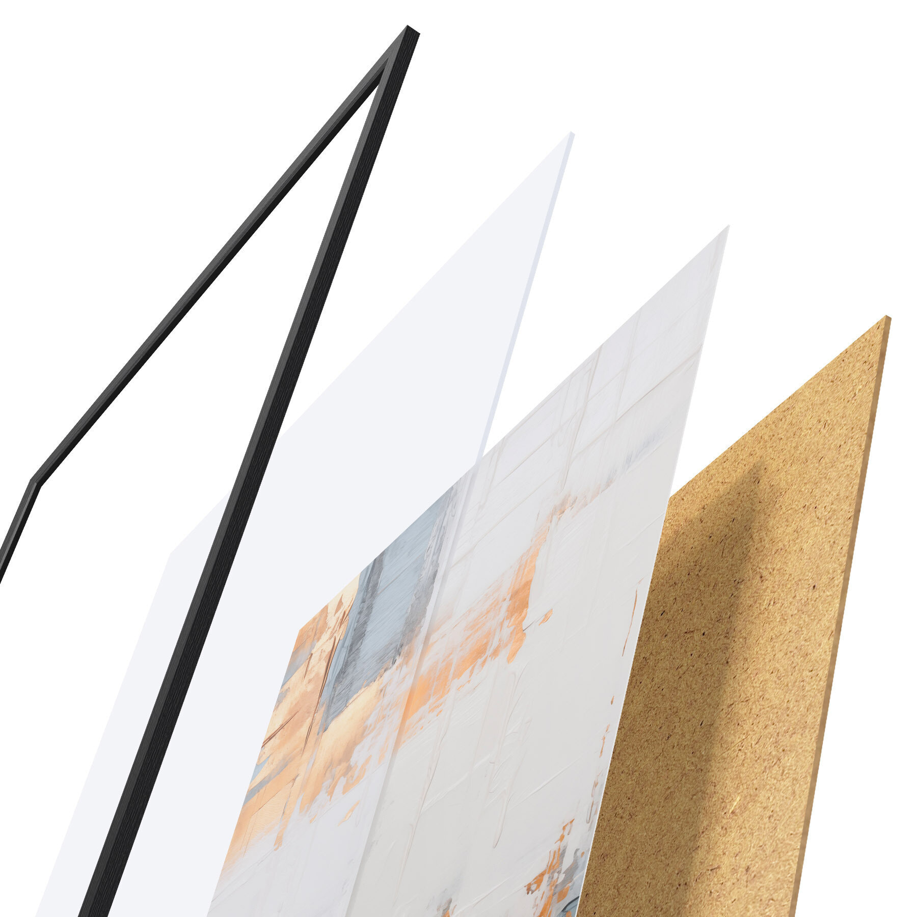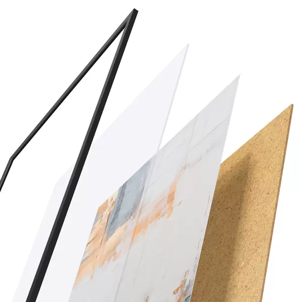 Le poster se compose d'un cadre, d'un plexiglas, d'une image imprimée et d'un support en aggloméré. Le poster peut être immédiatement accroché au mur grâce aux fixations au dos.