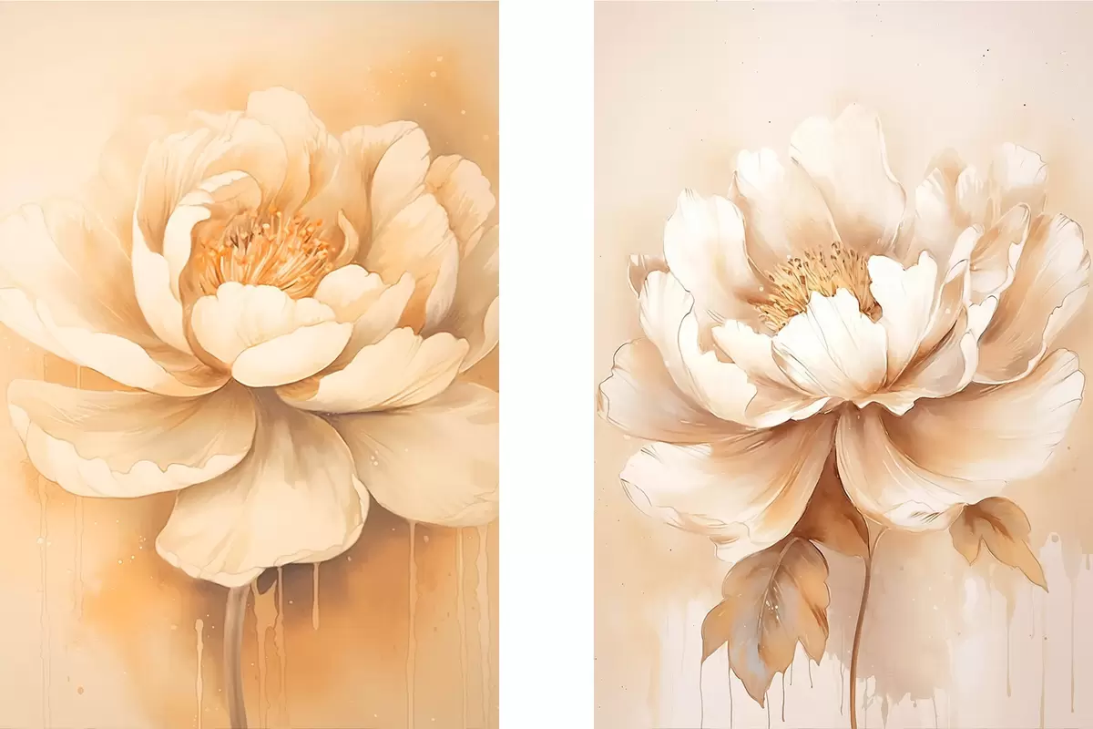Trois types de matériaux peuvent être commandés : Economic Canvas - matériau dense et durable pour l'impression numérique, identique à la toile de peintre, surface imperméable, reproduction réaliste des détails, matériau à grain moyen. Premium Canvas - la texture ressemble à celle d'une toile de peintre (petits fils entrelacés). Reproduction douce et détaillée de l'image sur une surface mate. Eco-Premium - tissu 100 % coton de haute qualité. Grâce aux fibres naturelles de coton, le matériau est durable et résistant à l'usure. Excellente reproduction des couleurs et des détails.
