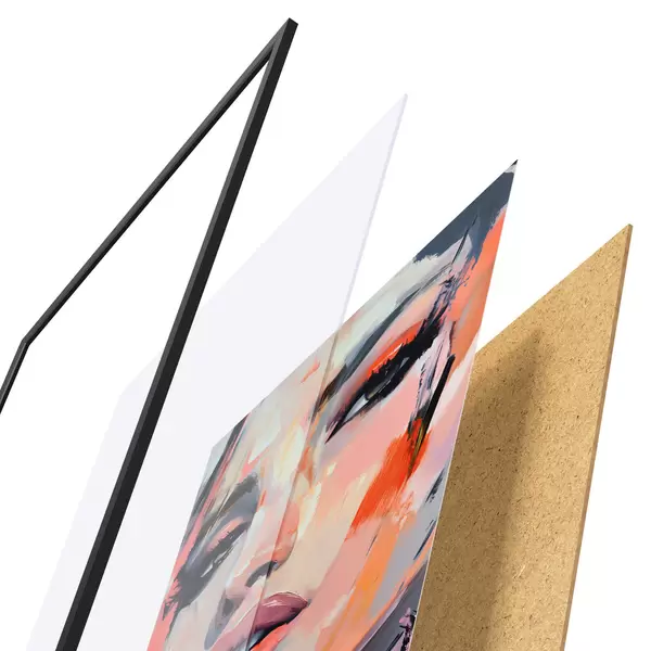 Le poster se compose d'un cadre, d'un plexiglas, d'une image imprimée et d'un support en aggloméré. Le poster peut être immédiatement accroché au mur grâce aux fixations au dos.