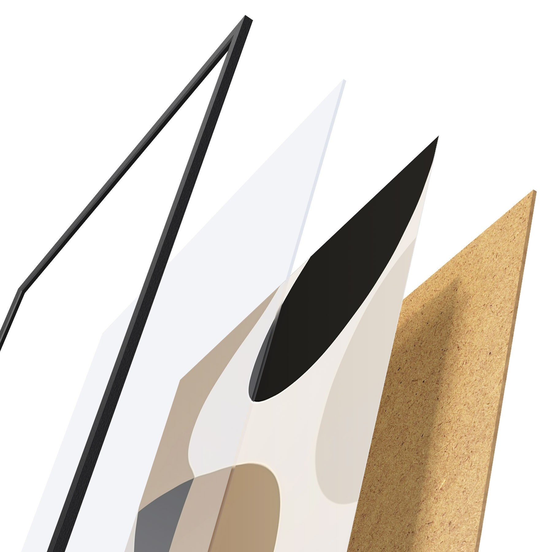 Le poster se compose d'un cadre, d'un plexiglas, d'une image imprimée et d'un support en aggloméré. Le poster peut être immédiatement accroché au mur grâce aux fixations au dos.