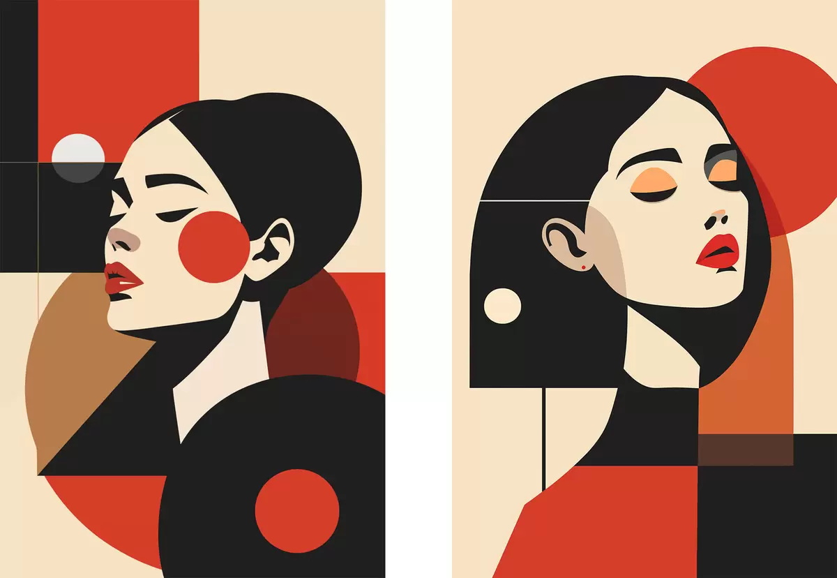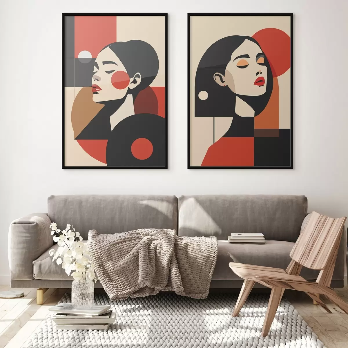 Affiche Portraits de femmes dans le style Bauhaus d00516