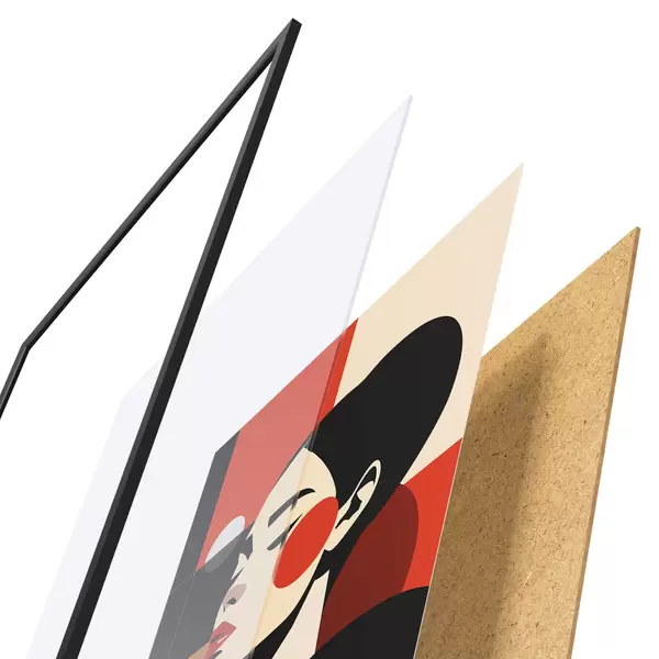 Le poster se compose d'un cadre, d'un plexiglas, d'une image imprimée et d'un support en aggloméré. Le poster peut être immédiatement accroché au mur grâce aux fixations au dos.