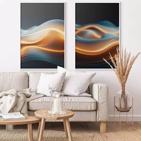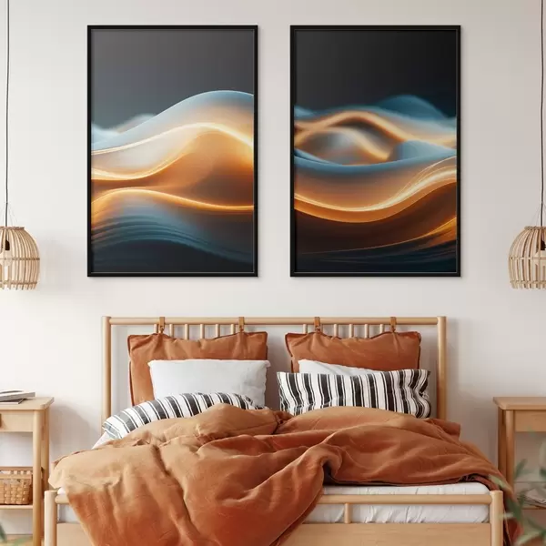 Affiche Formes abstraites et fluides avec des lignes orange, courbes et lignes douces, composition dynamique, fond sombre Non d00526