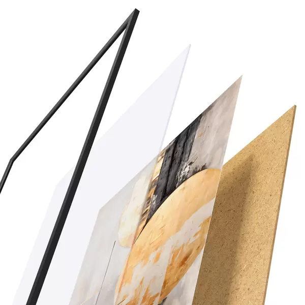 Le poster se compose d'un cadre, d'un plexiglas, d'une image imprimée et d'un support en aggloméré. Le poster peut être immédiatement accroché au mur grâce aux fixations au dos.