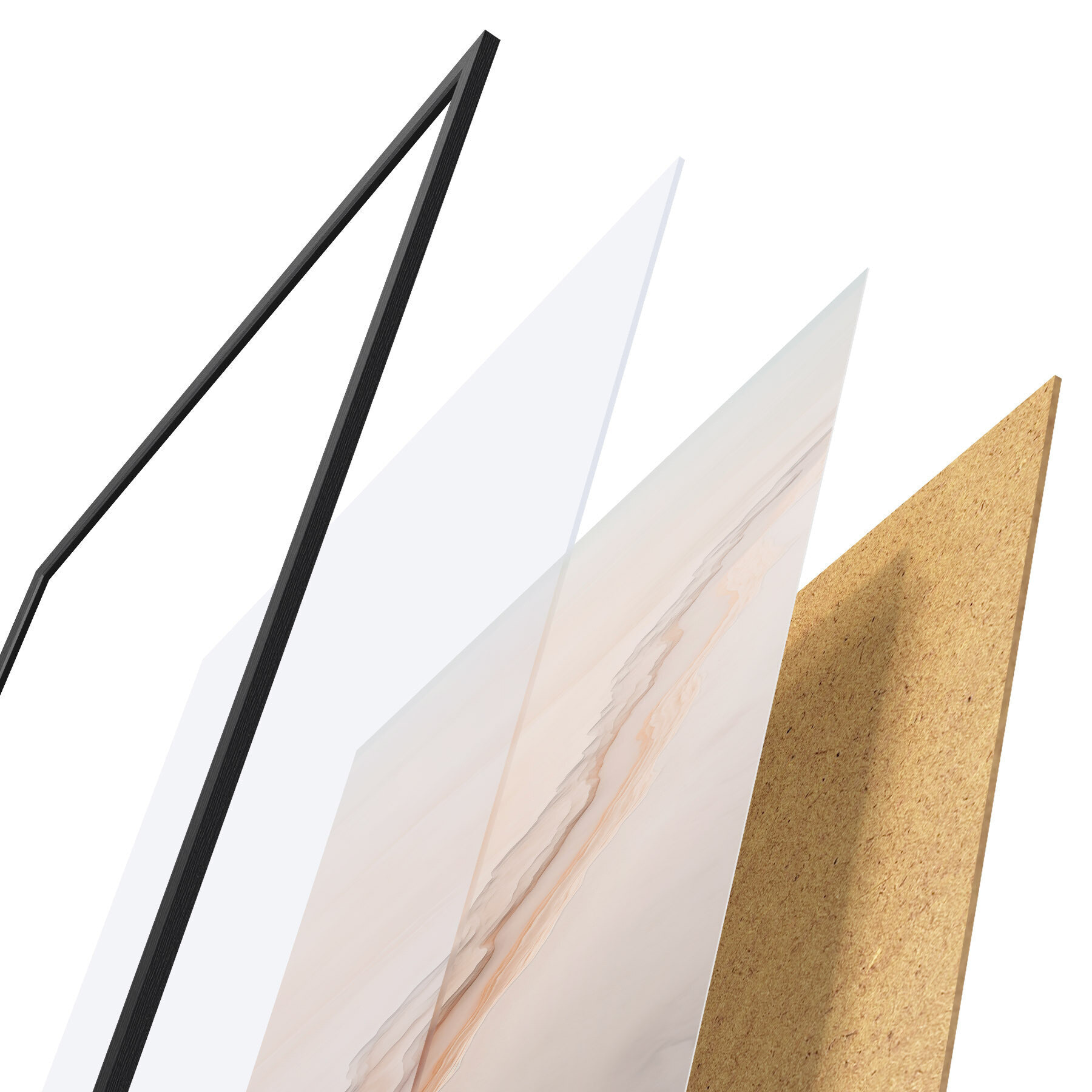 Le poster se compose d'un cadre, d'un plexiglas, d'une image imprimée et d'un support en aggloméré. Le poster peut être immédiatement accroché au mur grâce aux fixations au dos.