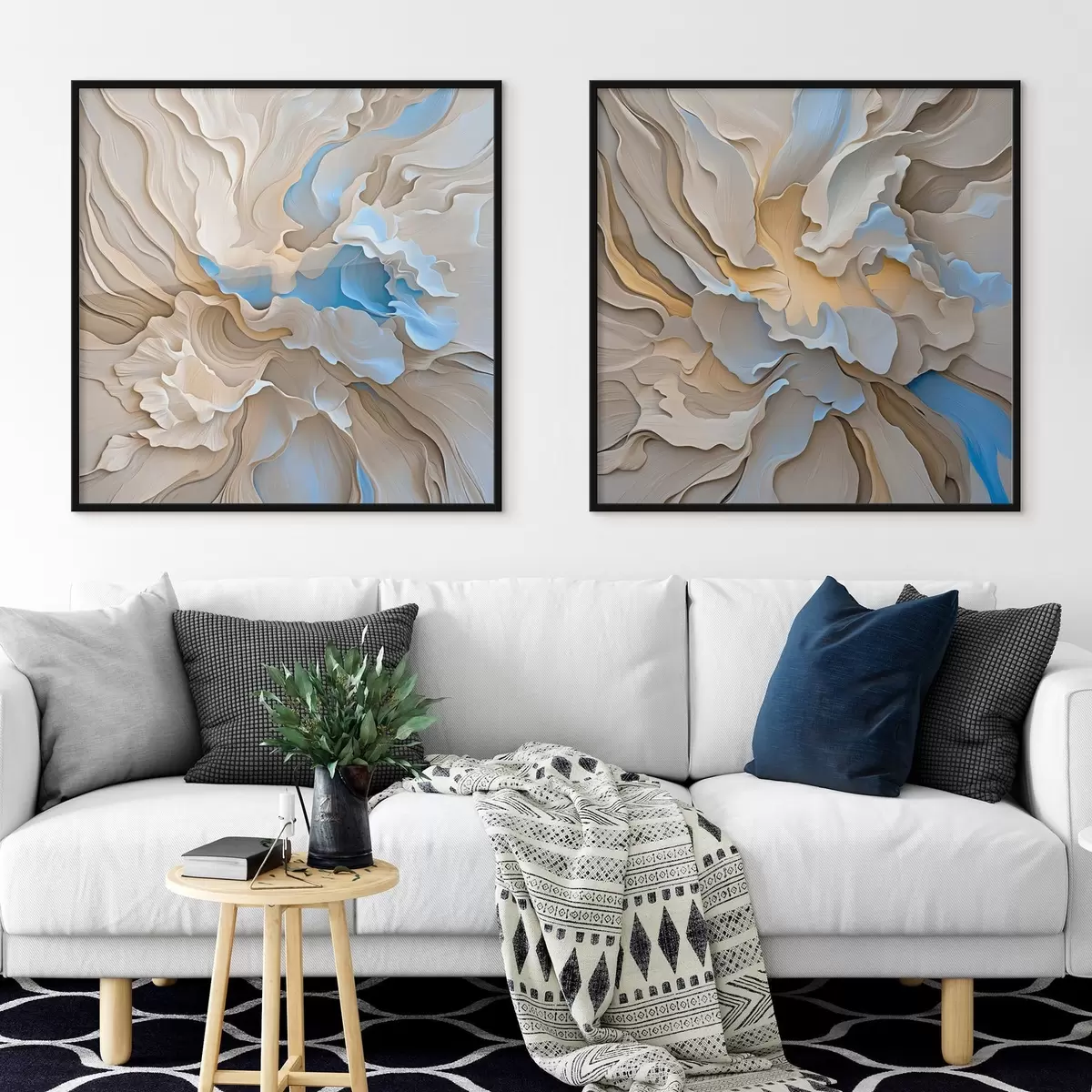 Trois types de matériaux peuvent être commandés : Economic Canvas - matériau dense et durable pour l'impression numérique, identique à la toile de peintre, surface imperméable, reproduction réaliste des détails, matériau à grain moyen. Premium Canvas - la texture ressemble à celle d'une toile de peintre (petits fils entrelacés). Reproduction douce et détaillée de l'image sur une surface mate. Eco-Premium - tissu 100 % coton de haute qualité. Grâce aux fibres naturelles de coton, le matériau est durable et résistant à l'usure. Excellente reproduction des couleurs et des détails.