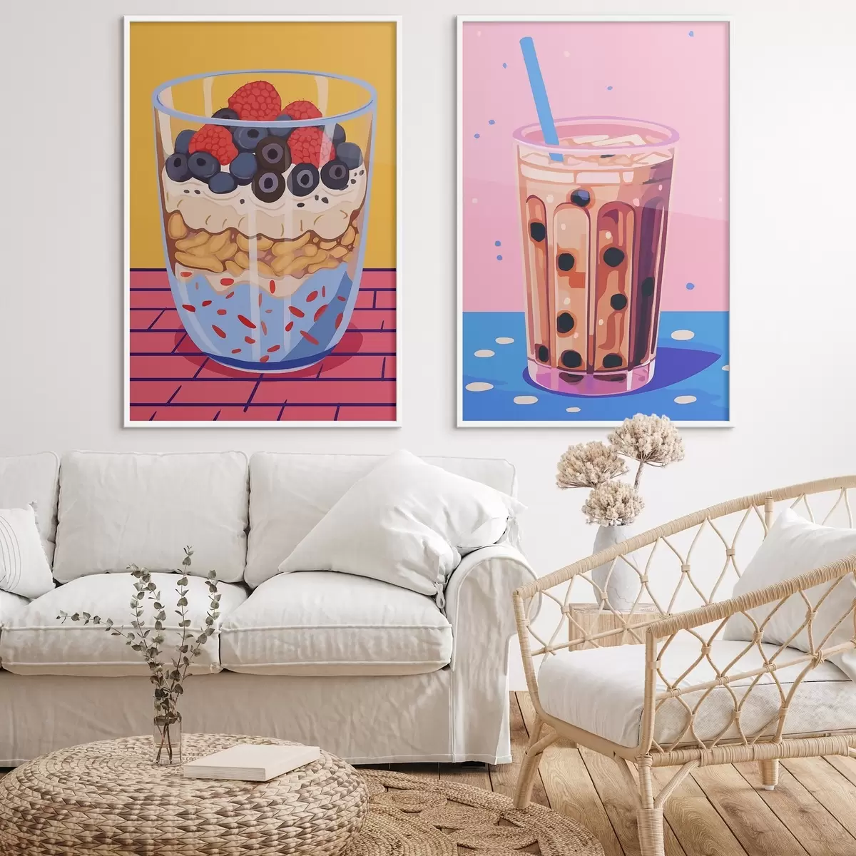 Affiche Bubble tea et granola avec fruits d00545