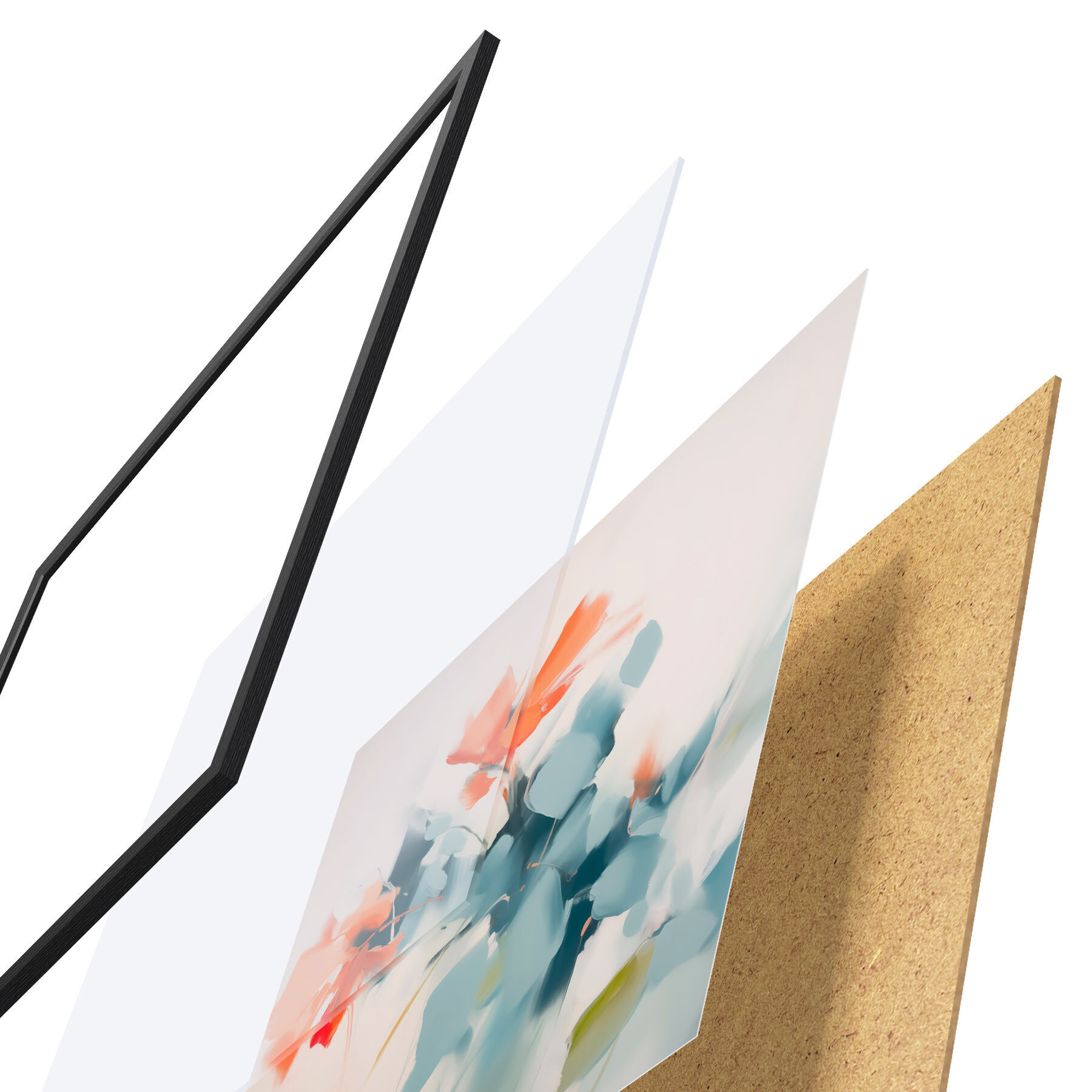Le poster se compose d'un cadre, d'un plexiglas, d'une image imprimée et d'un support en aggloméré. Le poster peut être immédiatement accroché au mur grâce aux fixations au dos.