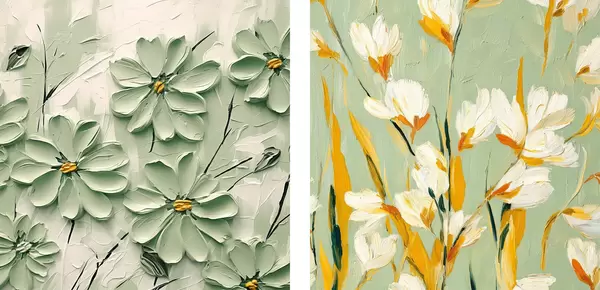 Affiche Prairie fleurie : composition artistique avec des fleurs volumétriques sur un fond pastel Non d00567