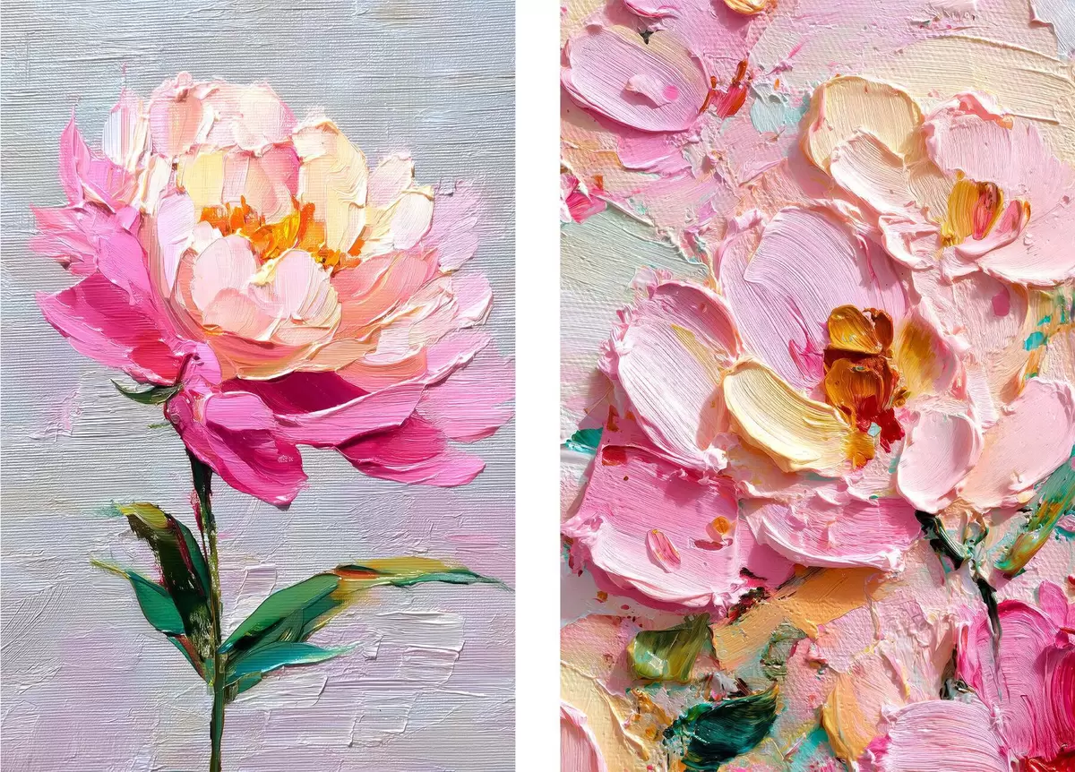 Trois types de matériaux peuvent être commandés : Economic Canvas - matériau dense et durable pour l'impression numérique, identique à la toile de peintre, surface imperméable, reproduction réaliste des détails, matériau à grain moyen. Premium Canvas - la texture ressemble à celle d'une toile de peintre (petits fils entrelacés). Reproduction douce et détaillée de l'image sur une surface mate. Eco-Premium - tissu 100 % coton de haute qualité. Grâce aux fibres naturelles de coton, le matériau est durable et résistant à l'usure. Excellente reproduction des couleurs et des détails.