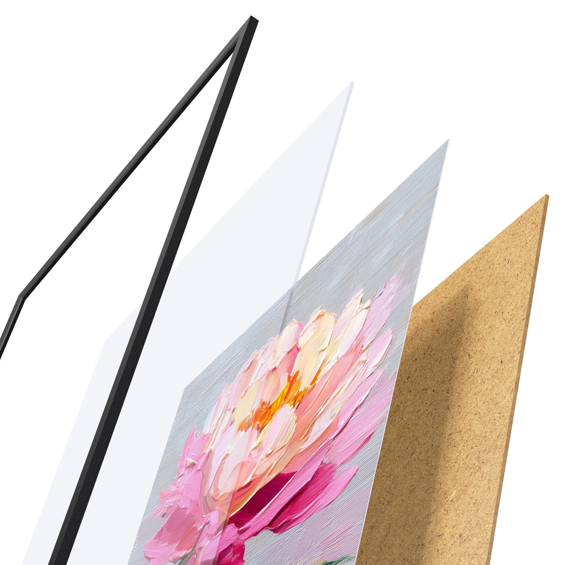 Le poster se compose d'un cadre, d'un plexiglas, d'une image imprimée et d'un support en aggloméré. Le poster peut être immédiatement accroché au mur grâce aux fixations au dos.