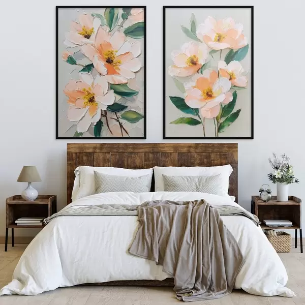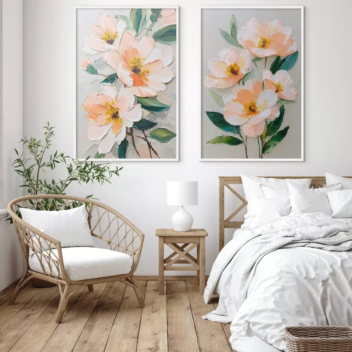 Affiche Peinture à l'emporte-pièce combinant un grand bouquet et des fleurs individuelles Non d00579