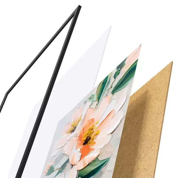 Le poster se compose d'un cadre, d'un plexiglas, d'une image imprimée et d'un support en aggloméré. Le poster peut être immédiatement accroché au mur grâce aux fixations au dos.