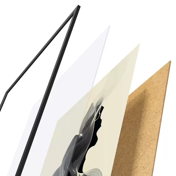 Le poster se compose d'un cadre, d'un plexiglas, d'une image imprimée et d'un support en aggloméré. Le poster peut être immédiatement accroché au mur grâce aux fixations au dos.