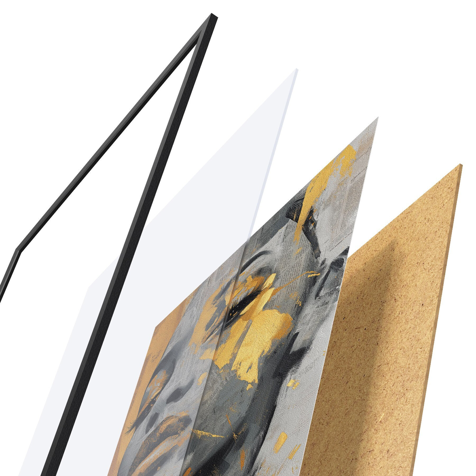 Le poster se compose d'un cadre, d'un plexiglas, d'une image imprimée et d'un support en aggloméré. Le poster peut être immédiatement accroché au mur grâce aux fixations au dos.