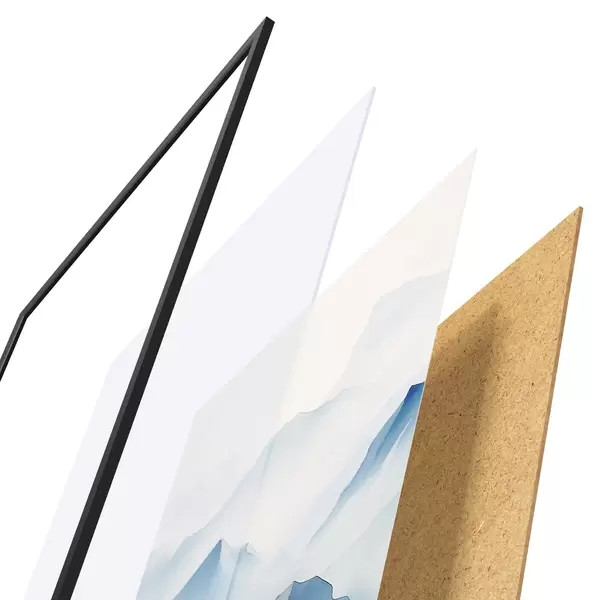 Le poster se compose d'un cadre, d'un plexiglas, d'une image imprimée et d'un support en aggloméré. Le poster peut être immédiatement accroché au mur grâce aux fixations au dos.