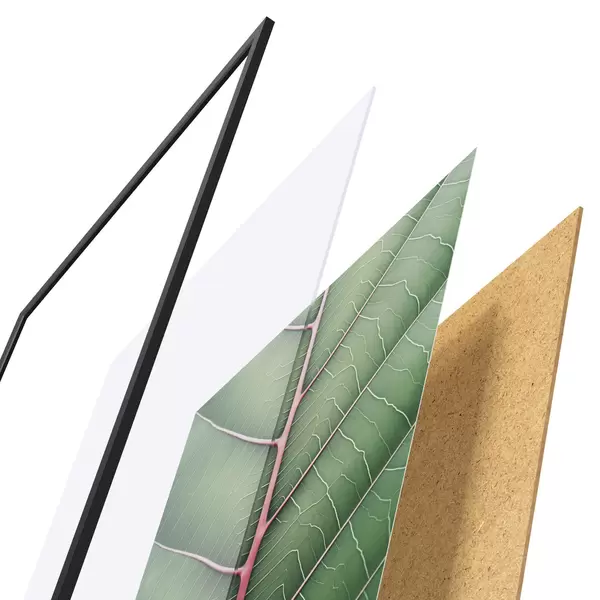 Le poster se compose d'un cadre, d'un plexiglas, d'une image imprimée et d'un support en aggloméré. Le poster peut être immédiatement accroché au mur grâce aux fixations au dos.