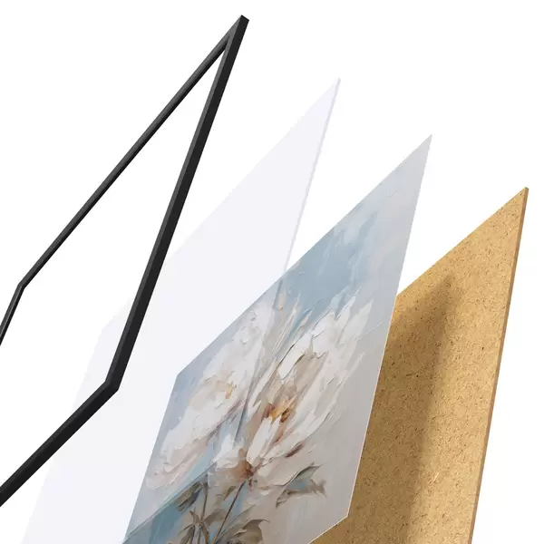 Le poster se compose d'un cadre, d'un plexiglas, d'une image imprimée et d'un support en aggloméré. Le poster peut être immédiatement accroché au mur grâce aux fixations au dos.
