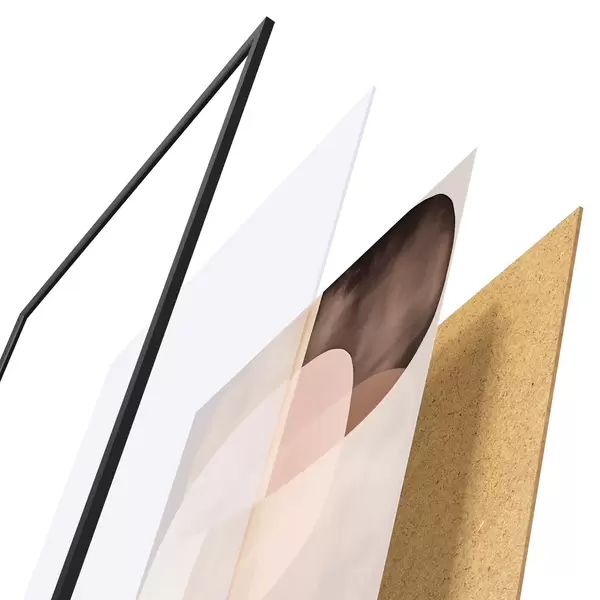 Le poster se compose d'un cadre, d'un plexiglas, d'une image imprimée et d'un support en aggloméré. Le poster peut être immédiatement accroché au mur grâce aux fixations au dos.