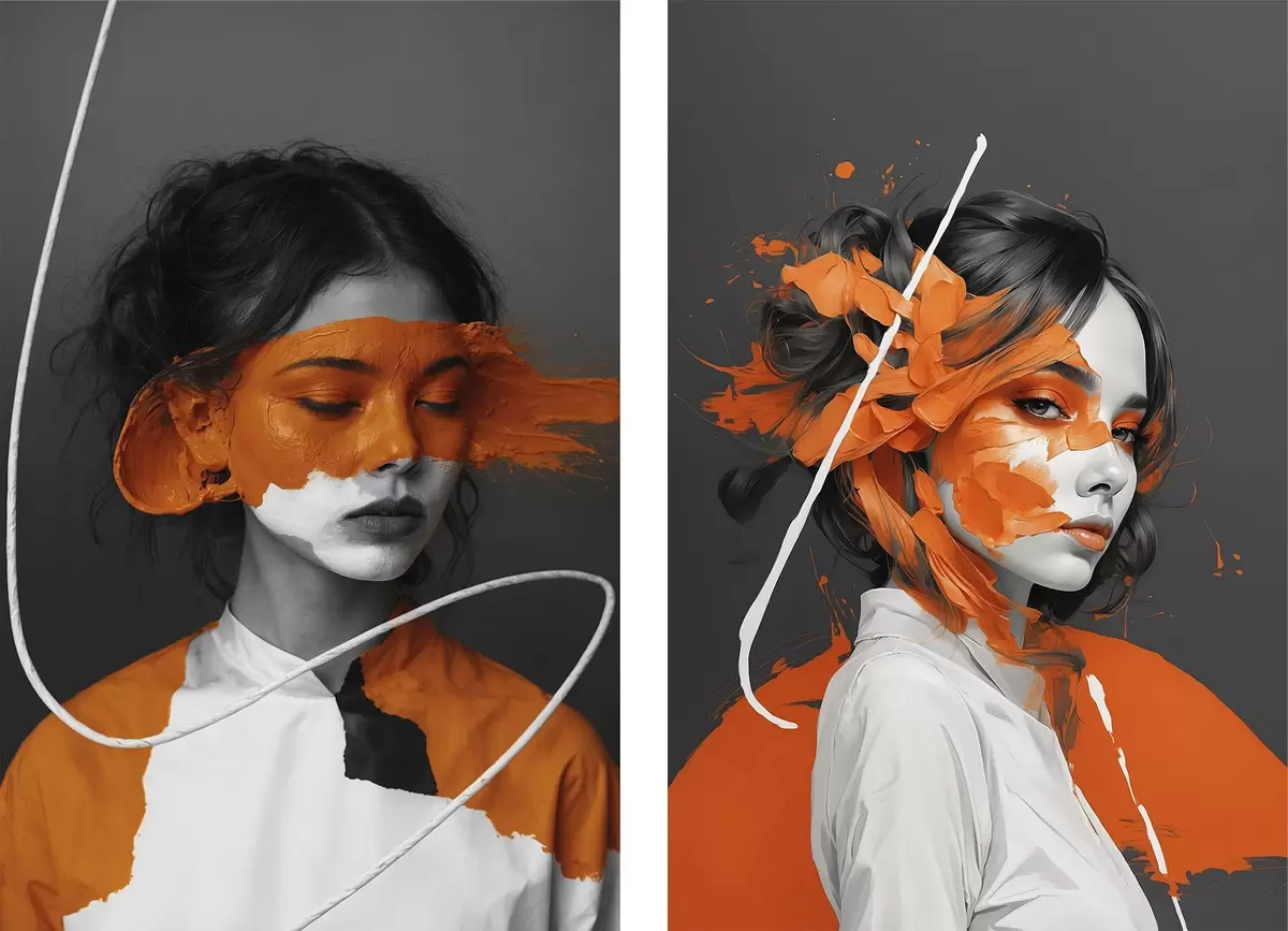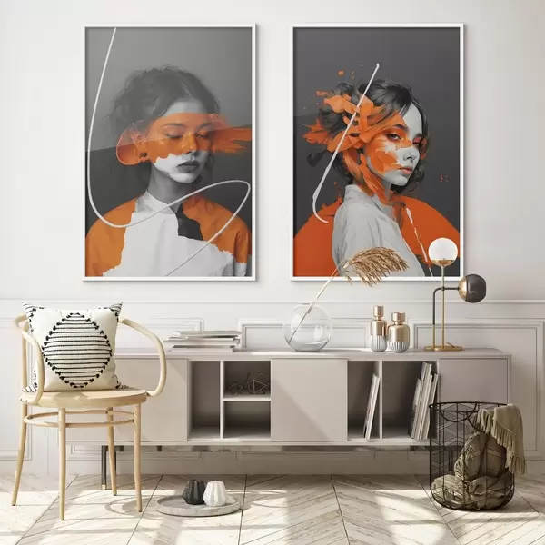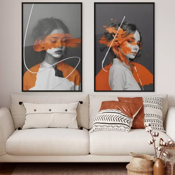 Affiche Portraits de filles avec des coups de pinceau abstraits de couleur orange d00693