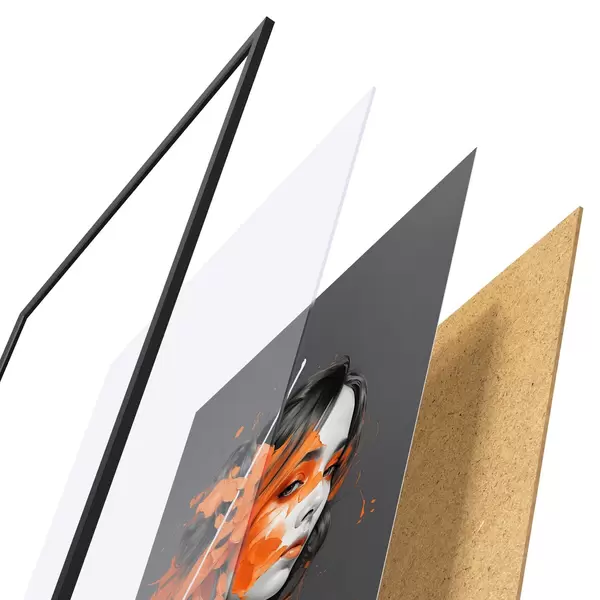 Le poster se compose d'un cadre, d'un plexiglas, d'une image imprimée et d'un support en aggloméré. Le poster peut être immédiatement accroché au mur grâce aux fixations au dos.