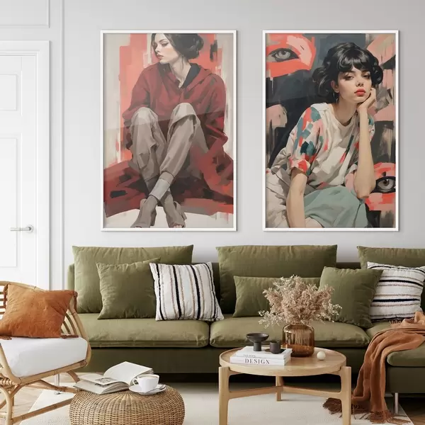 Affiche Portraits de filles dans des styles abstraits rouge et beige Non d00695