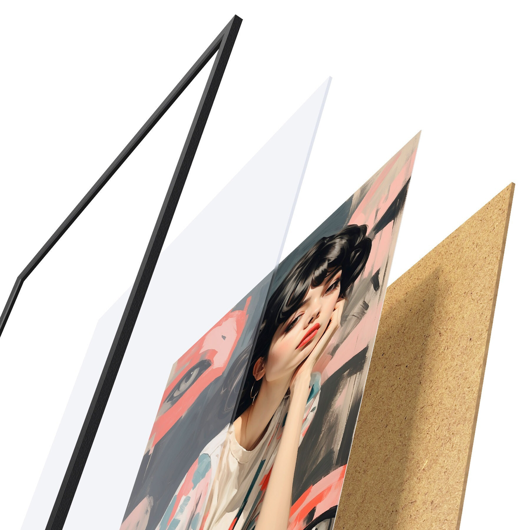 Le poster se compose d'un cadre, d'un plexiglas, d'une image imprimée et d'un support en aggloméré. Le poster peut être immédiatement accroché au mur grâce aux fixations au dos.