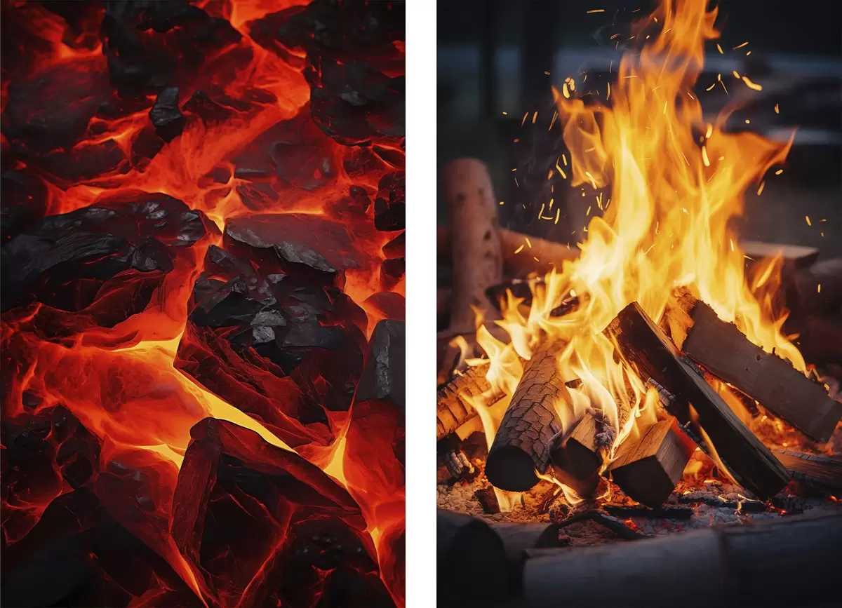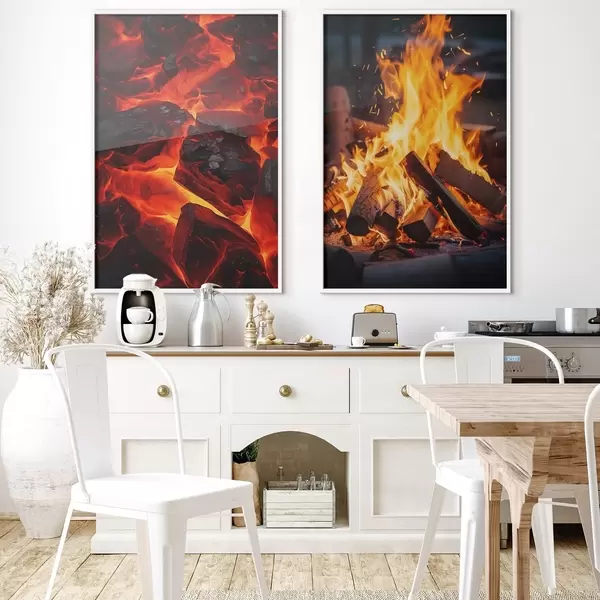 Affiche Charbons ardents et flammes dans l'obscurité d00696