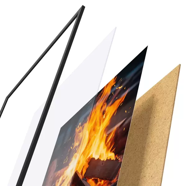 Le poster se compose d'un cadre, d'un plexiglas, d'une image imprimée et d'un support en aggloméré. Le poster peut être immédiatement accroché au mur grâce aux fixations au dos.