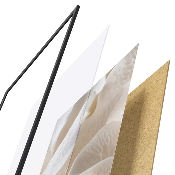 Le poster se compose d'un cadre, d'un plexiglas, d'une image imprimée et d'un support en aggloméré. Le poster peut être immédiatement accroché au mur grâce aux fixations au dos.