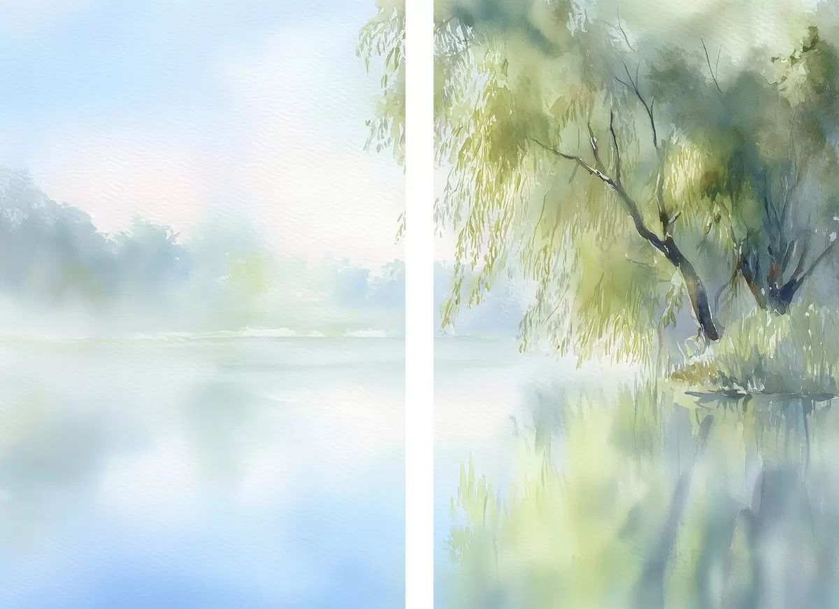 Affiche saule au bord du lac, style aquarelle d00702
