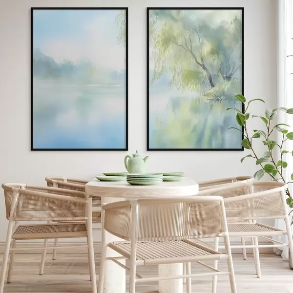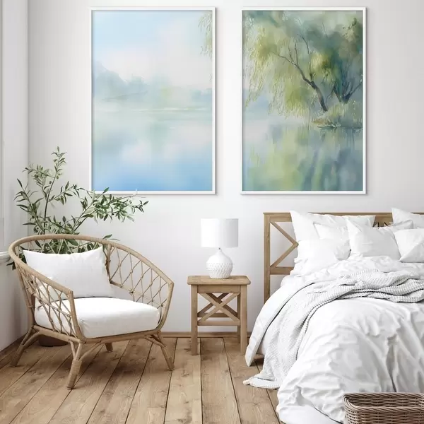 Affiche saule au bord du lac, style aquarelle Non d00702
