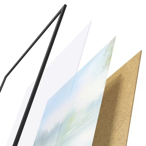 Le poster se compose d'un cadre, d'un plexiglas, d'une image imprimée et d'un support en aggloméré. Le poster peut être immédiatement accroché au mur grâce aux fixations au dos.