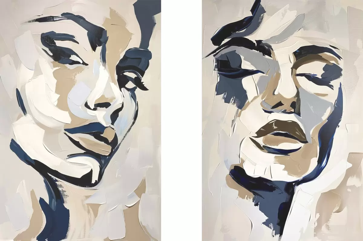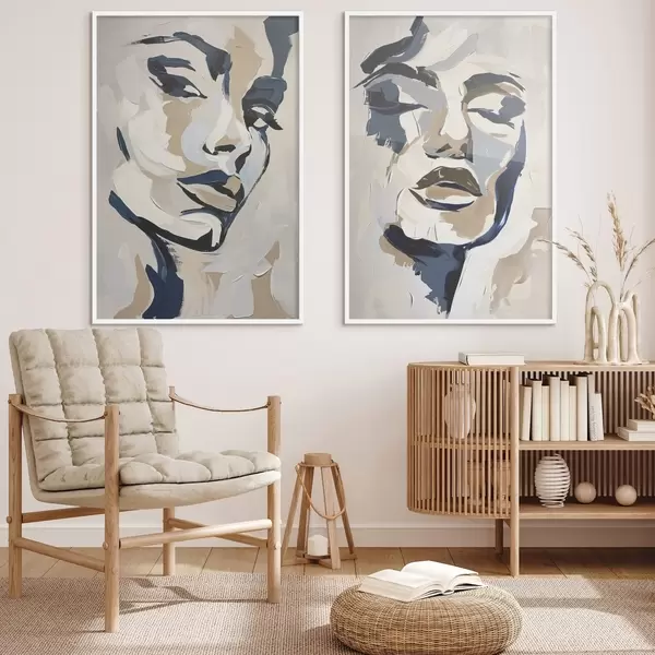 Affiche Visages abstraits de femmes avec des coups de pinceau imités Non d00713
