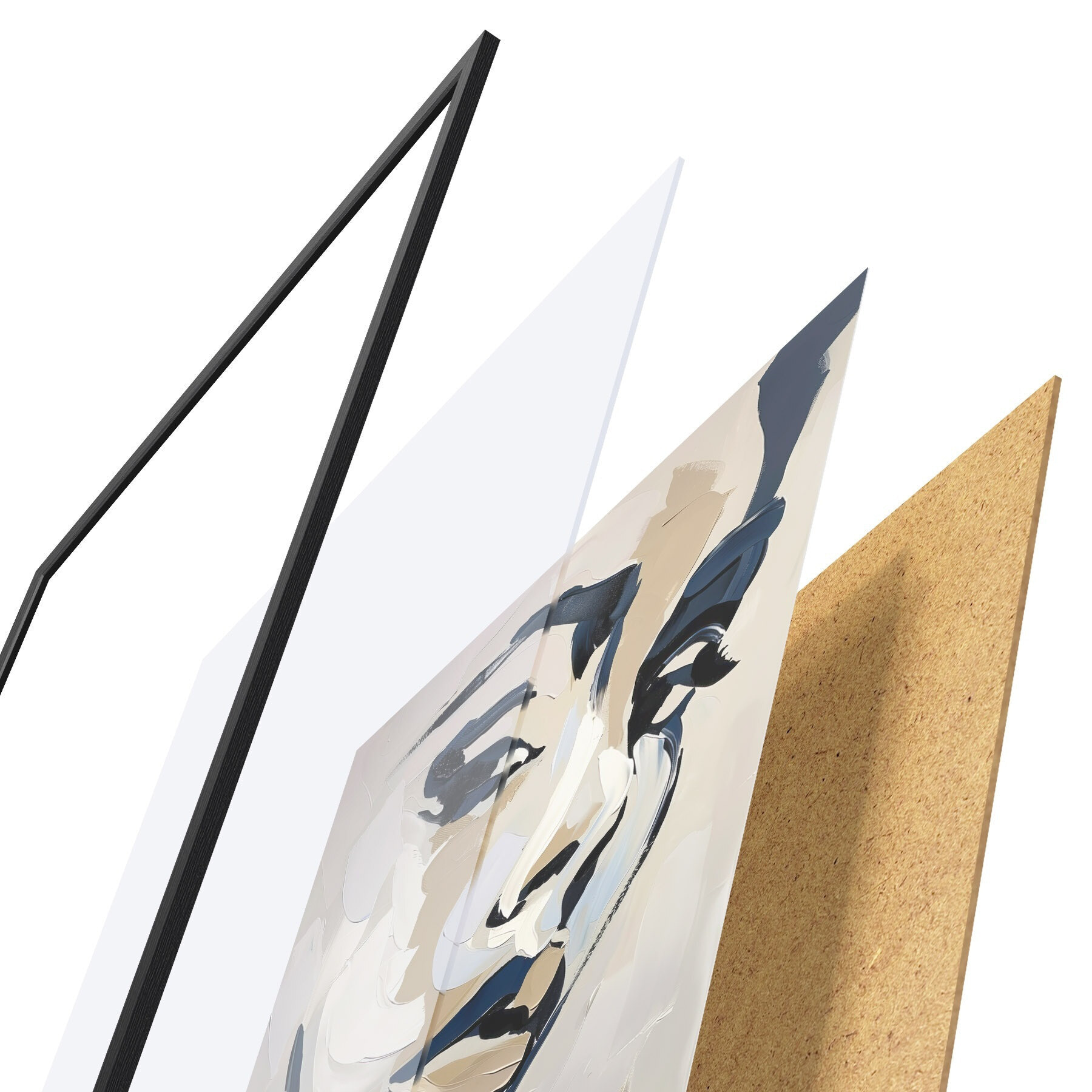 Le poster se compose d'un cadre, d'un plexiglas, d'une image imprimée et d'un support en aggloméré. Le poster peut être immédiatement accroché au mur grâce aux fixations au dos.
