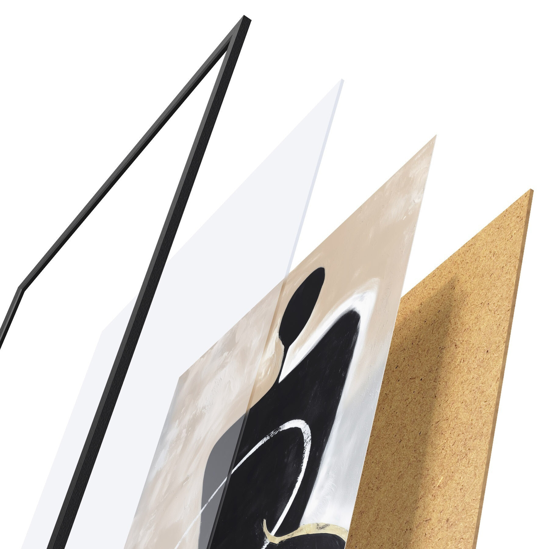 Le poster se compose d'un cadre, d'un plexiglas, d'une image imprimée et d'un support en aggloméré. Le poster peut être immédiatement accroché au mur grâce aux fixations au dos.