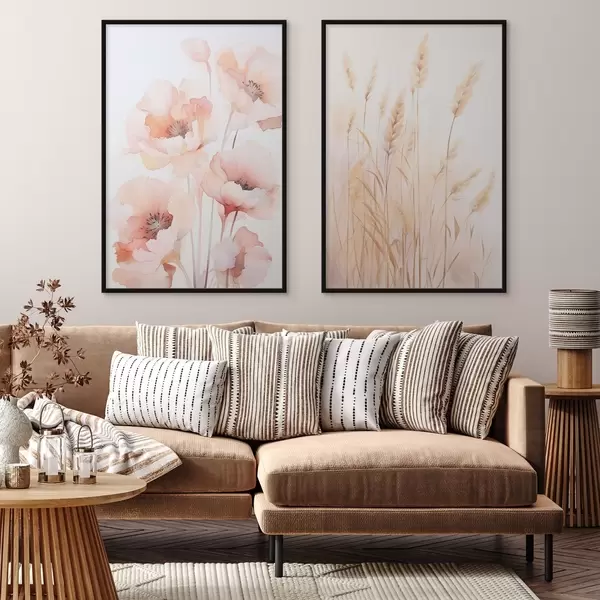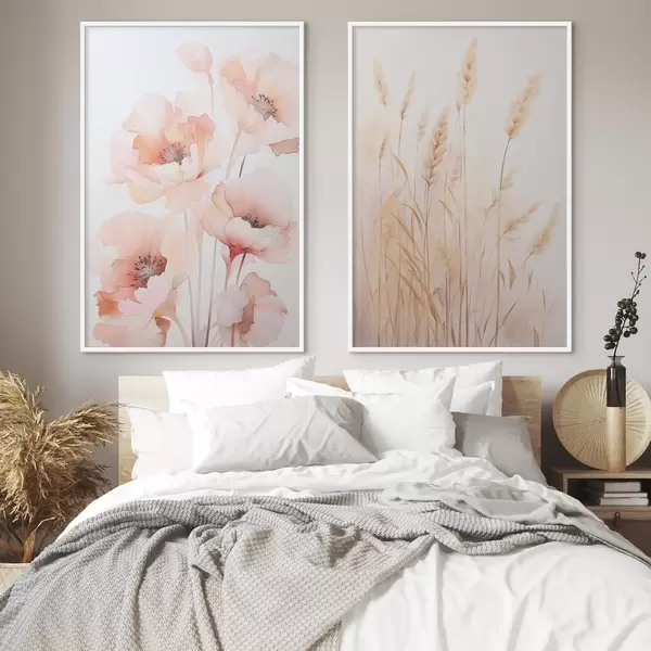 Affiche Imitation aquarelle de coquelicots et d'épillets d00723